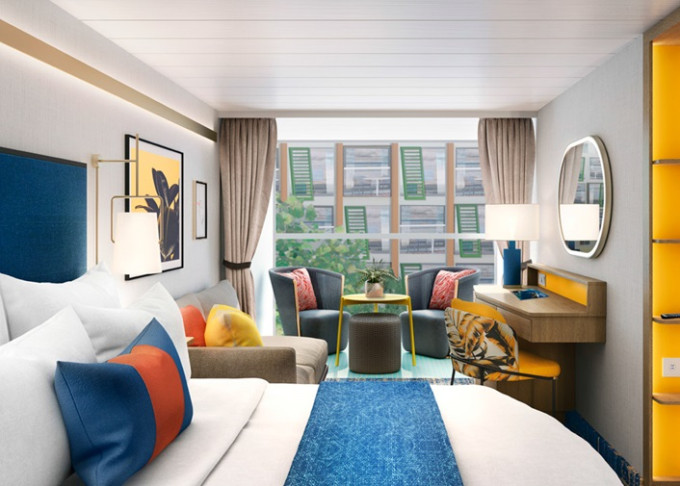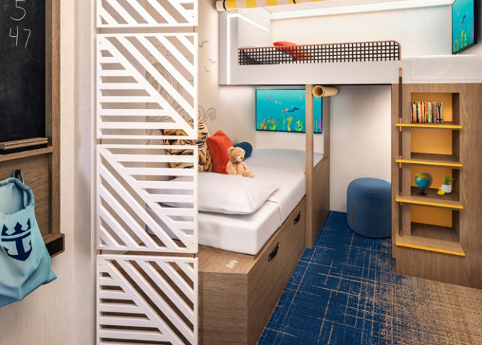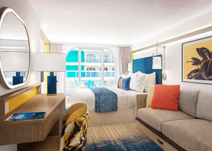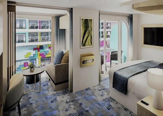 SF - Surfside Family Suite 25 m² + 5 m² balkón s výhľadom na štvrť Surfside. 9,10,11. paluba vzadu. Max 4 osoby (2 dospelé a 2 deti). Výhody Royal Suite Sky class. | 7 846 € 3 923 € za osobu | ||