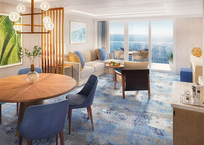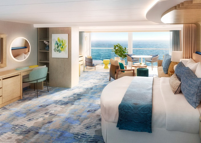 VP - Panoramic Suite 34-41 m². Veľké panoramatické neotvárateľné okno s výhľadom na more. 16,17. paluba vpredu. Max 4 osoby. Výhody Royal Suite Sky class. | 10 929 € 10 929 € za osobu |
