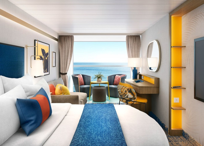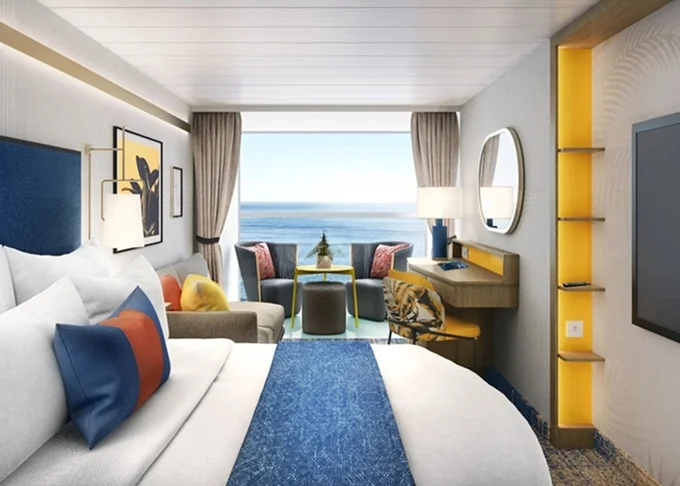 VP - Panoramic Suite 34-41 m². Veľké panoramatické neotvárateľné okno s výhľadom na more. 16,17. paluba vpredu. Max 4 osoby. Výhody Royal Suite Sky class. | 11 066 € 5 533 € za osobu |
