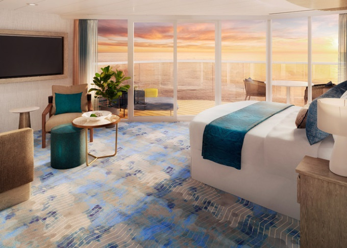 SN - Sunset Corner Suite 34-45 m² + 26-30 m² balkón s výhľadom na more. 8. až 12. paluba vzadu. Max 4 osoby. Výhody Royal Suite Sky class. | 11 571 € 11 571 € za osobu |