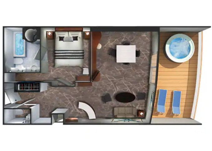 SA - Owner's Suite 77 m² / balkón 32 m². Vírivka. 8/9. paluba - vpredu. Max 5 osôb. Výhody Suite. | 13 652 € 6 826 € za osobu |