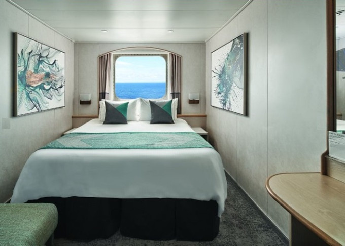 OC - Vonkajšia kajuta s veľkým obló 13 m². Veľké neotvárateľné obló. 7,8. paluba . Max 2-3 osoby. | 2 602 € 1 301 € za osobu |