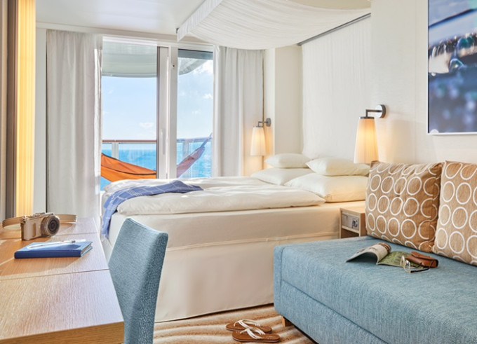 JA - Junior Suite s balkónom PREMIUM 34 m² + terasa 27,5 m². 8. až 15. paluba. Max 4 osoby. Cenový model Premium + výhody Junior Suite. | 4 490 € 2 245 € za osobu |