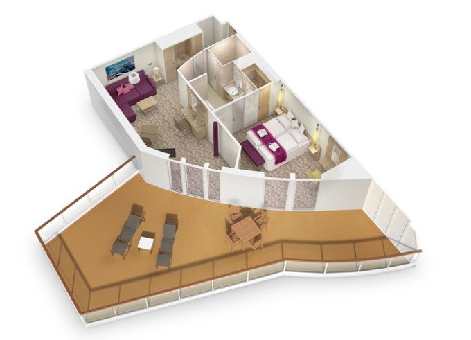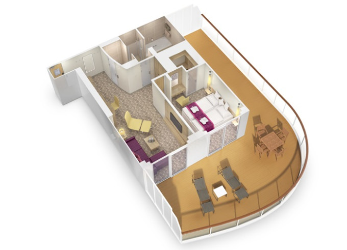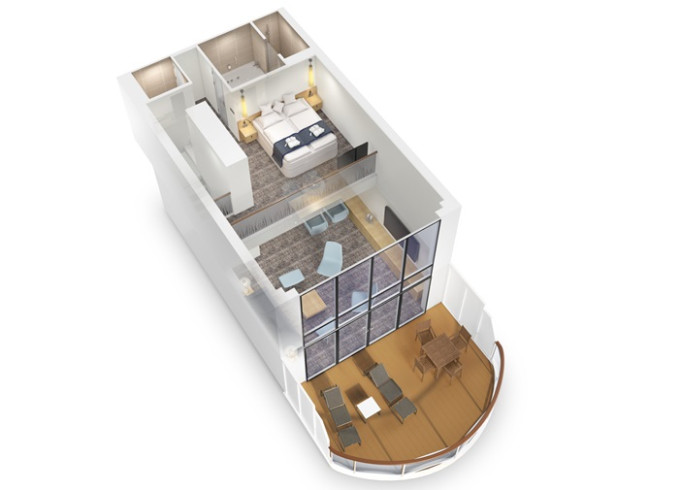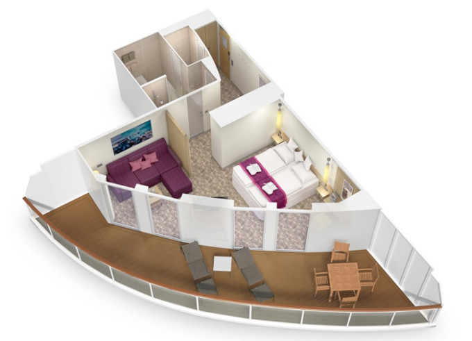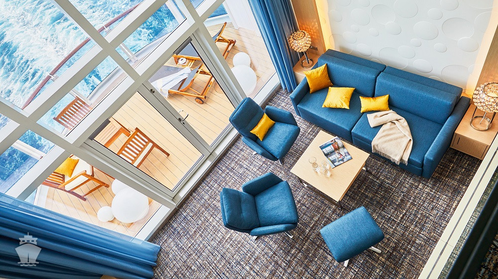 SB - Suite PREMIUM 45 m² + balkón 38 m². 17. paluba. Max 5 osôb. Cenový model Premium + výhody Suite. | 6 750 € 3 375 € za osobu |
