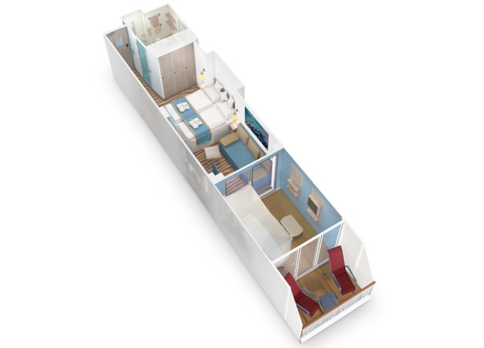 DB - Kajuta s verandou Deluxe PREMIUM 17,5 m² + balkón 12 m². 11. až 17. paluba. Max 5 osôb. Cenový model Premium. | 2 880 € 1 440 € za osobu | ||