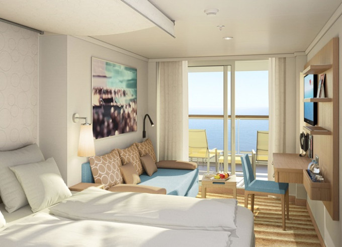 BA - Kajuta s balkónom PREMIUM od 15,5 m² + balkón 3 m². 9. až 17. paluba. Max 4 osoby. Cenový model Premium. | 2 310 € 1 155 € za osobu | ||