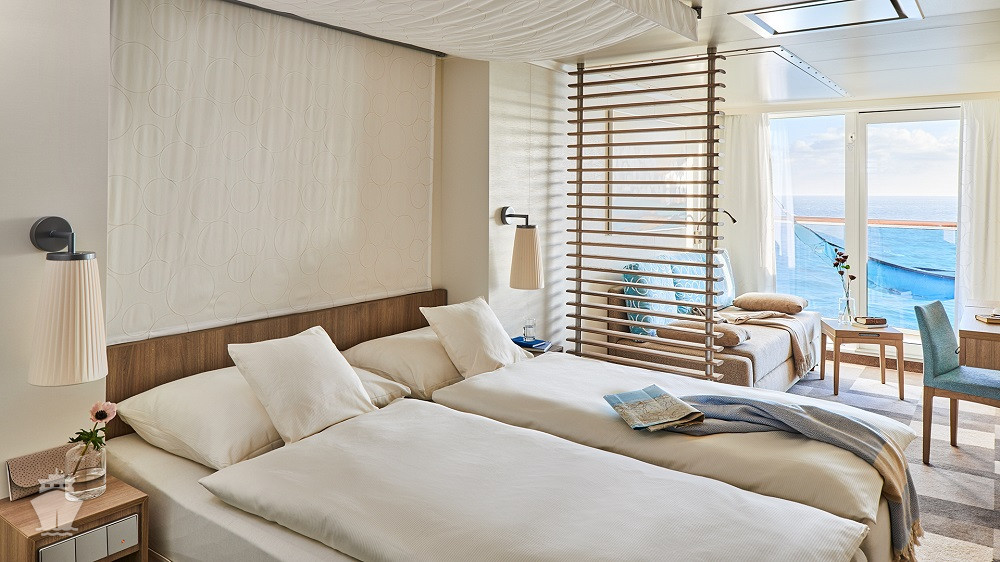 VC - Kajuta s verandou Komfort PREMIUM od 17 m² + balkón od 4,5 m². 8,9,10. paluba. Max 4 osoby. Cenový model Premium. | 2 340 € 1 170 € za osobu | ||