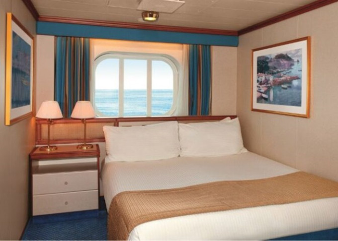OV - Vonkajšia kajuta / obmedzený výhľad 16 m². Neotvárateľné okno s obmedzeným výhľadom. Max 2-4 osoby (2 horné lôžka). | 3 176 € 1 588 € za osobu |