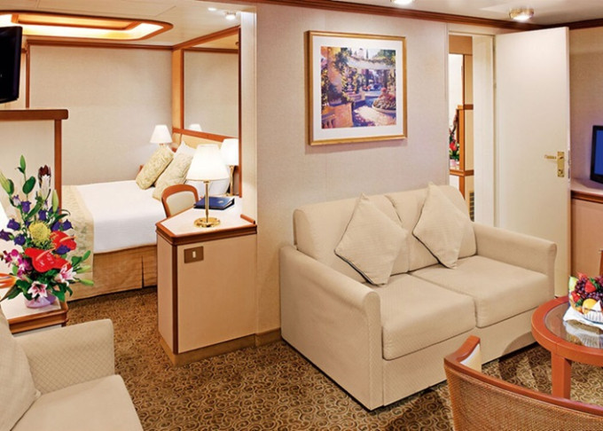 S6 - Vista Suite s balkónom 45 m² (vrátane balkóna). Max 3-4 osoby (gauč + horné lôžko). Výhody Suite. | 10 412 € 5 206 € za osobu |