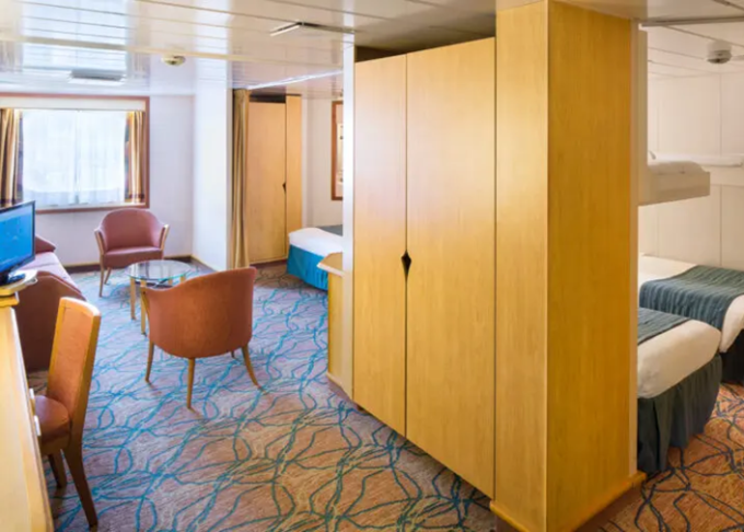 VO - Ocean View Suite (bez balkónu) 49 m². Veľké neotvárateľné okná. Max 6-8 osôb. Výhody Suite. | 6 615 € 2 205 € za osobu |