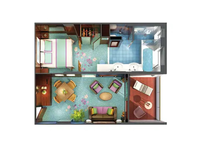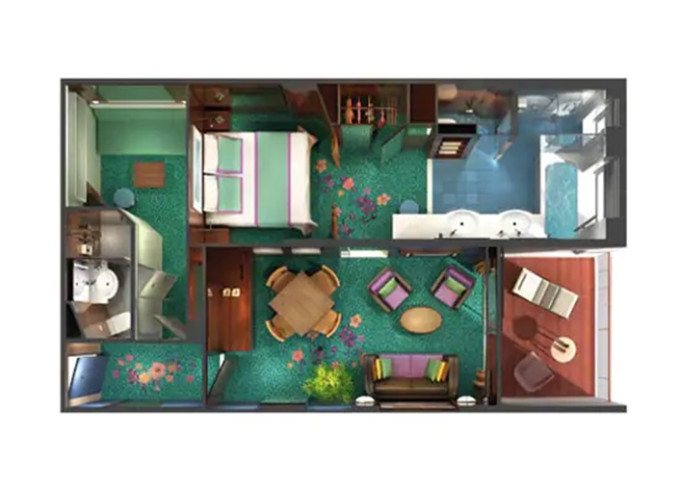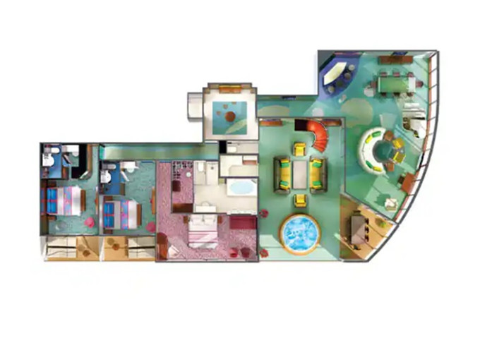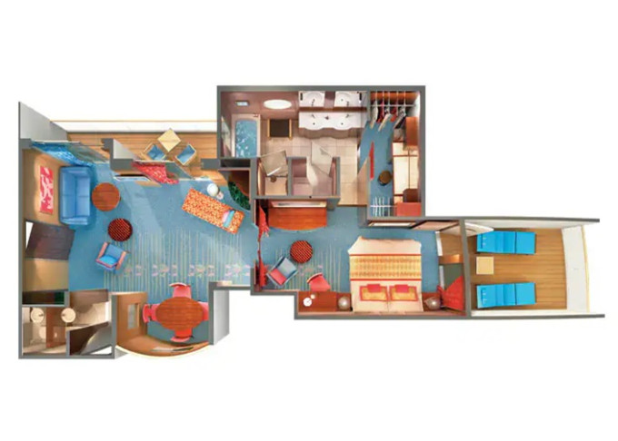 S4 - Deluxe Family Suite - 2 spálne 50 m² / balkón 5 m². Výhody Suite. 11. paluba - vpredu, stred. Max 6 osôb. 4 378 € 2 189 € za osobu