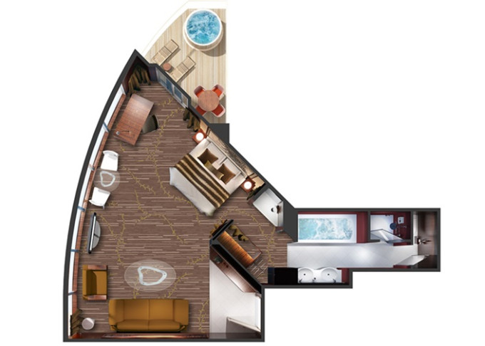 H3 - The Haven Deluxe Owner's Suite 76 m² / balkón 14 m². 10. paluba - vpredu, centrálne. Max 4 osoby. Výhody The Haven. 5 728 € 2 864 € za osobu