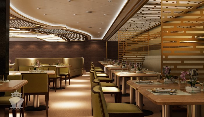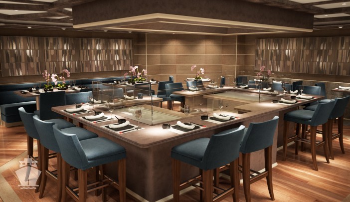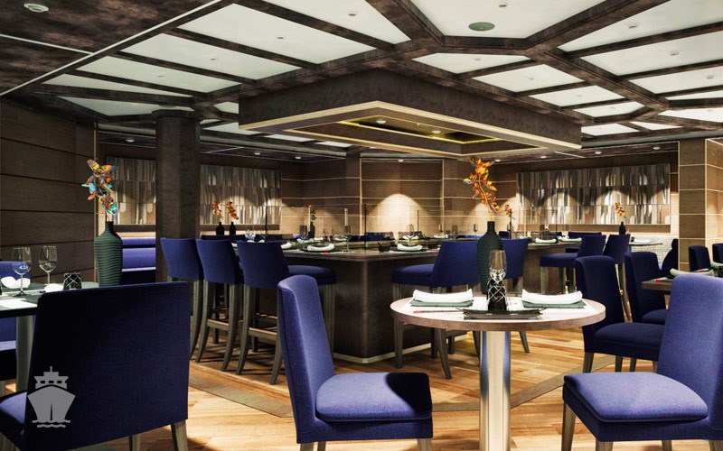 - Kaiseki - japonská reštaurácia, inšpirovaná 5 základnými prvkami japonskej kuchyne, so zreteľom na ekvilíbrium yin a yang. Dôraz na bezchybnú prípravu a nádhernú prezentáciu každého chodu. presentation. Počas dňa výber sushi, sashimi a iné raw ázijské jedlá, večer aj teppanyaki. Dress code: neformálny. Príplatok $ 60. Nutná rezervácia.