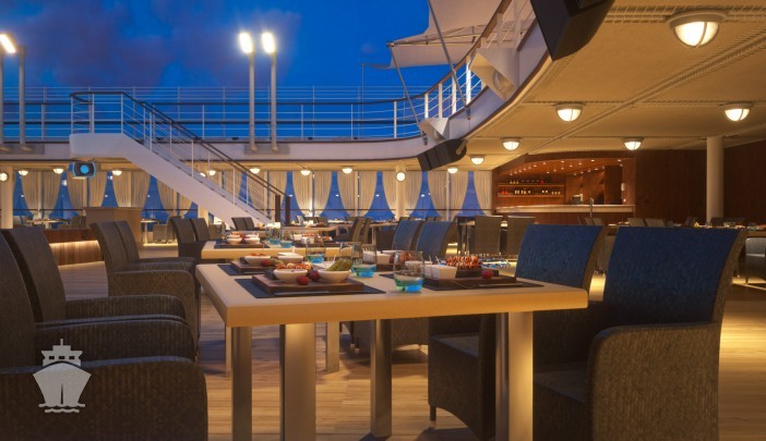 - La Terraza - ikonická Silversea à la carte reštaurácia. Výber autentických talianskych receptúr; mozzarella bar, sklep olivového oleja, bufet s morskými plodmi a salumeria. Šéfkuchár Alberto Colombo. Dress code: neformálny.