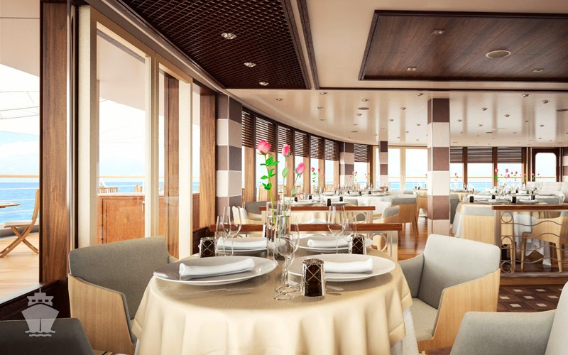 - La Dame (Relais & Châteaux®) - predstavuje menu zostavené najlepšími šéfkuchármi teamu Relais & Châteaux, ktorá je partnerom Silversea. Najvyššia francúzska kuchyňa. Moderný elegantný štýl, čašníci v bezchybných bielych rukavičkách. Dress code: formálny (dámy spoločenské alebo koktejlové šaty, páni smoking alebo tmavý oblek a kravata). Príplatok $ 60. Nutná rezervácia.