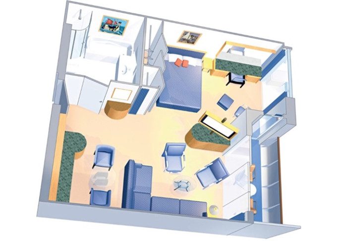 VP - Ocean View Panoramic Suite (bez balkónu) 38 m². Panoramatické neotvárateľné okná. 12. paluba. Max 6 osôb. Výhody Suite. | 3 585 € 3 585 € za osobu | ||