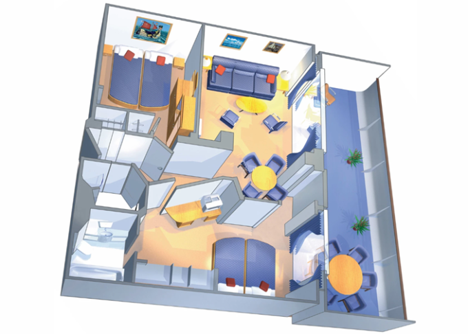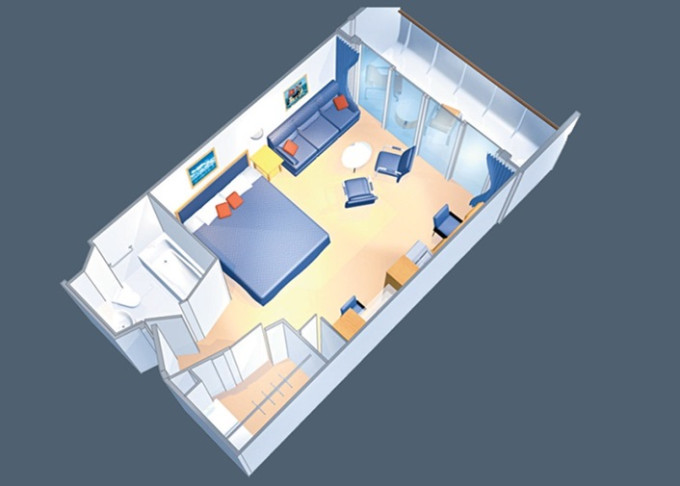 VP - Ocean View Panoramic Suite (bez balkónu) 38 m². Panoramatické neotvárateľné okná. 12. paluba. Max 6 osôb. Výhody Suite. | 3 688 € 1 844 € za osobu | ||