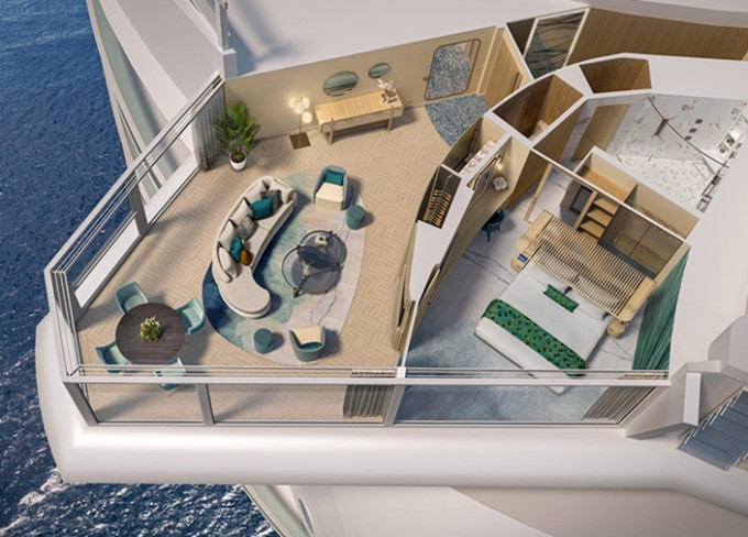 OS - Owner’s Suite 52 m² + balkón 23 m². 18. paluba. Max 4 osoby. Výhody Royal Suite Sky Class. | 5 580 € 1 860 € za osobu |