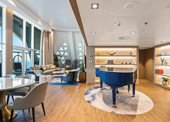 OS - Owner’s Suite 52 m² + balkón 23 m². 18. paluba. Max 4 osoby. Výhody Royal Suite Sky Class. | 6 148 € 1 537 € za osobu |