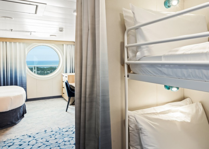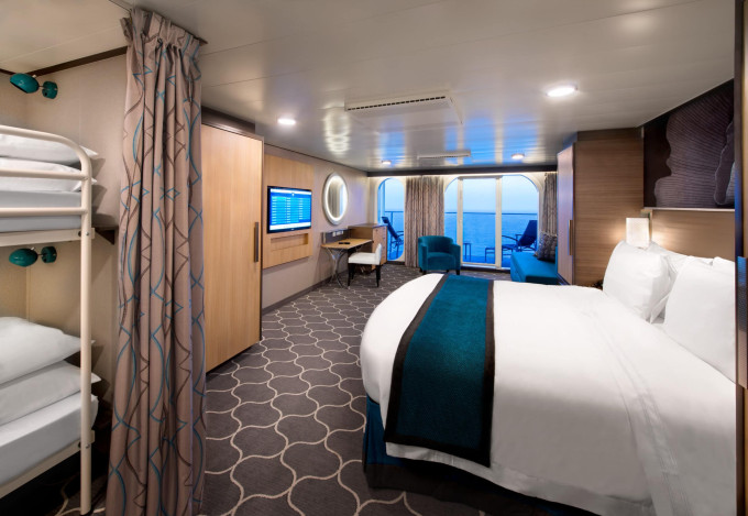 1A - Veľká kajuta s veľkým balkónom Ultra Spacious 34 m² + balkón 7 m². 11. paluba. Oddelená časť s poschodovou posteľou. Max 6 osôb. | 2 834 € 1 417 € za osobu |