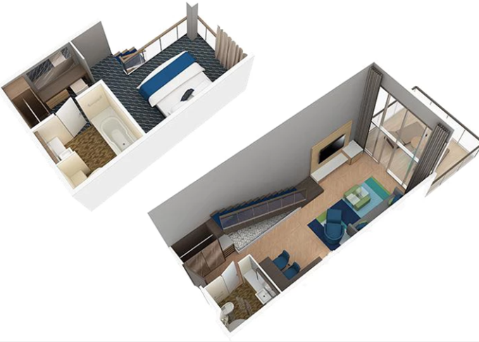 L1 - Crown Loft Suite 51 m² + balkón 11 m². 2-podlažný apartmán. 18. paluba. Max 4 osoby. Výhody Royal Suite Sky Class. | 6 414 € 2 138 € za osobu |