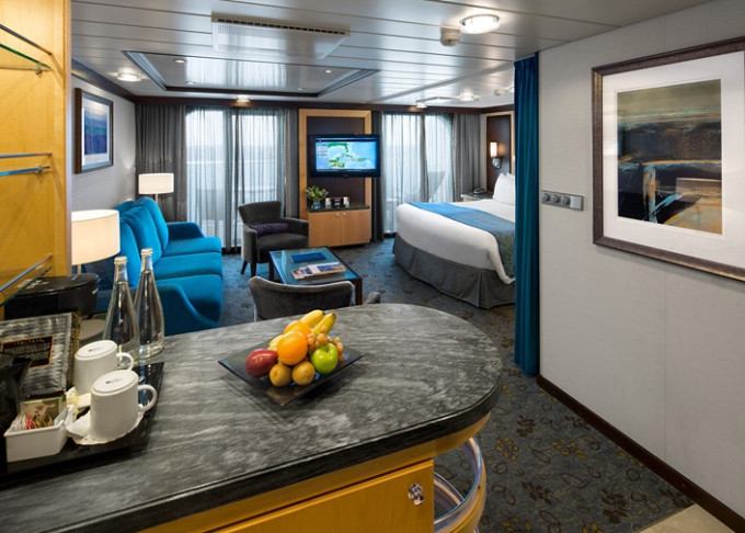 OS - Owner’s Suite 52 m² + balkón 23 m². 18. paluba. Max 4 osoby. Výhody Royal Suite Sky Class. | 5 014 € 2 507 € za osobu |