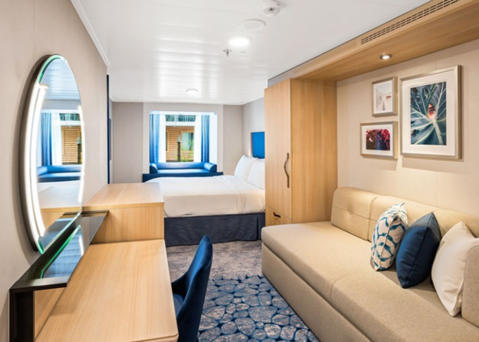 1K - Veľká vonkajšia kajuta Ultra Spacious 25 m². Neotvárateľné okno. 11. paluba. Oddelená časť s poschodovou posteľou. Max 6 osôb | 3 356 € 1 678 € za osobu | ||