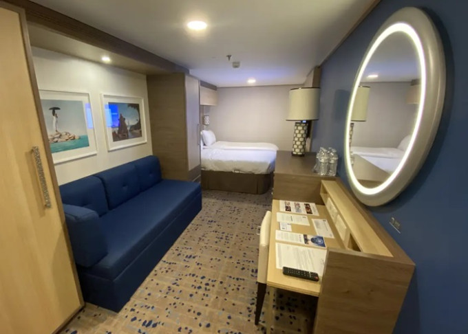 2U - Vnútorná kajuta s virtuálnym balkónom 15,5 m². Obrazovka veľkosti balkónových dverí s premietaným výhľadom. Centrálne umiestnenie. Max 2 osoby. | 1 172 € 586 € za osobu | ||