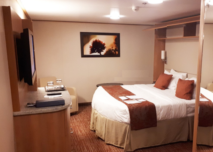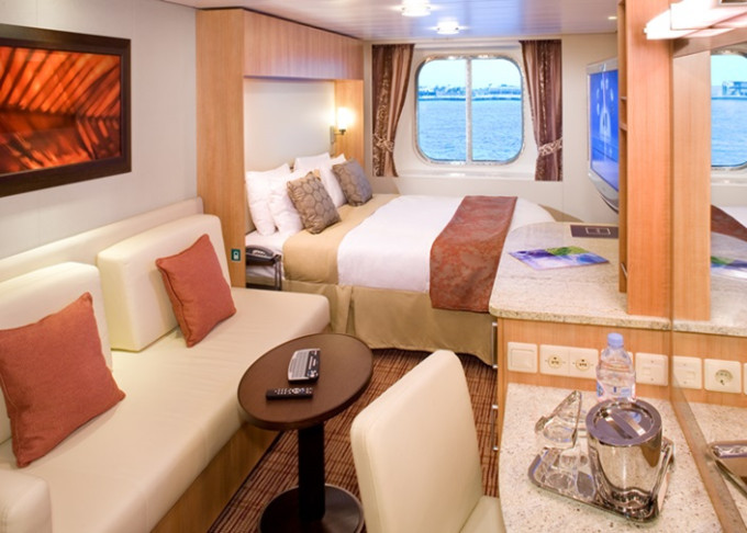 - Kajuty sú umiestnené v blízkosti lodného Spa. K ich vybaveniu patrí posilnený systém vzdušnej filtrácie, posteľ Queen-Size (v kategóriách Edge King-Size), veľké zasúvacie sklenené dvere, exkluzívne posteľné prádlo eXhale®, veľkorysé skladovacie priestory.