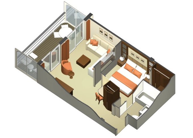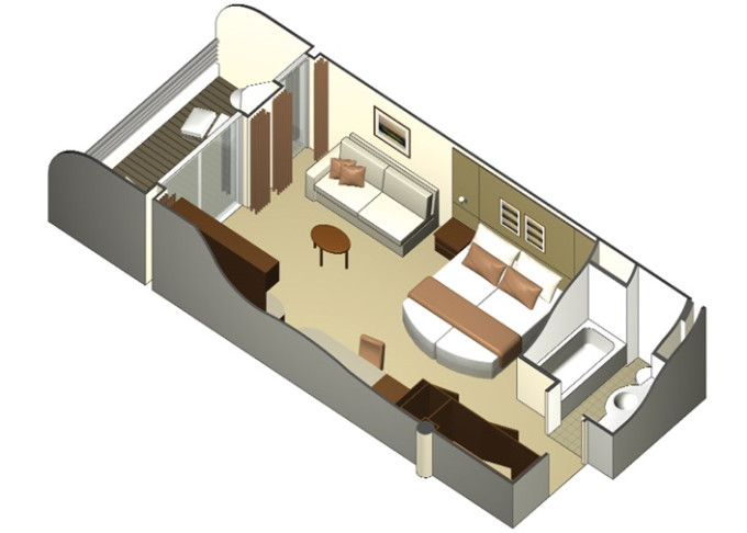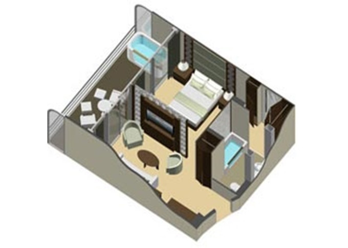 CS - Celebrity Suite 37 m² + balkón 9 m². 10,11. paluba. Max 4 osoby. Výhody Suite. | 12 144 € 3 036 € za osobu |