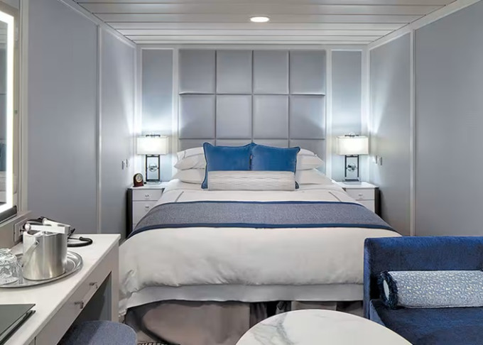 • Owner’s Suites: súkromný obed v apartmáne od 12:00 do 14:00 (voliteľné) v deň nalodenia