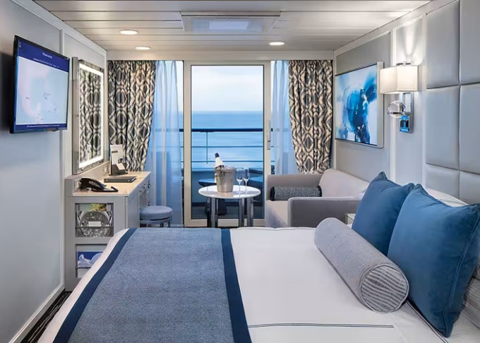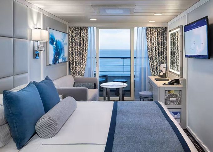 A3 - Kajuta s balkónom Concierge 16 m² + balkón 4 m². 7. paluba vpredu, vzadu. Max 2 osoby. Výhody kategórie Concierge. 11 978 € 5 989 € za osobu