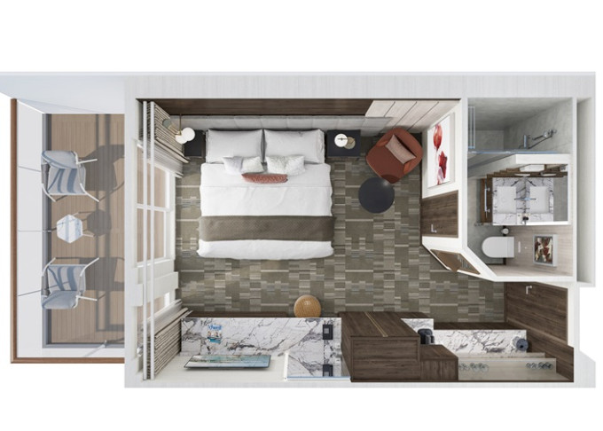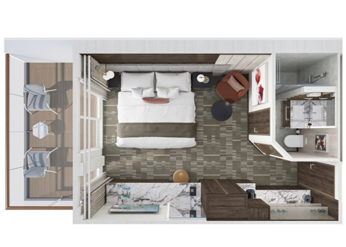 MC - Club Suite s balkónom 22-29 m² / balkón 5-7 m². 8. paluba - stred. Max 3 osoby. Výhody Club. | 2 272 € 1 136 € za osobu | ||