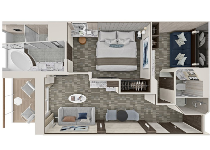 MA - Club Suite s balkónom 22-29 m² / balkón 5-7 m². 12,13,14. paluba. Max 3 osoby. Výhody Club. | 2 310 € 1 155 € za osobu | ||