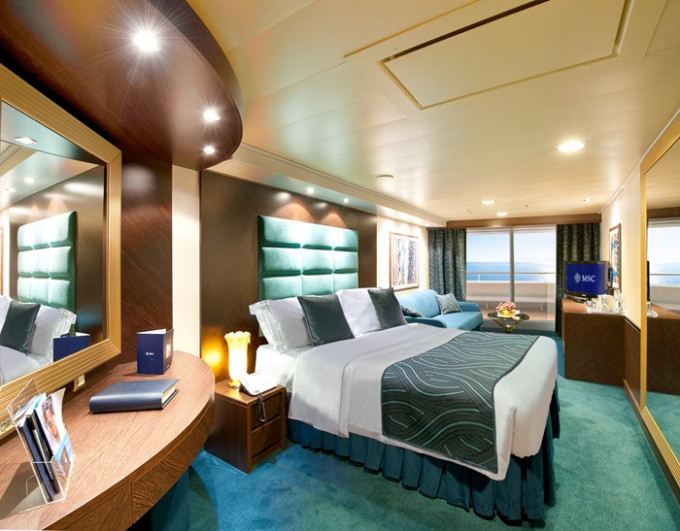 YCP - Yacht Club Deluxe Grand Suite 26 m² + balkón 6 m². 15/16. paluba. Cenový model MSC Yacht Club. | 14 454 € 4 818 € za osobu |