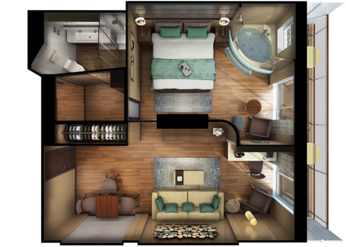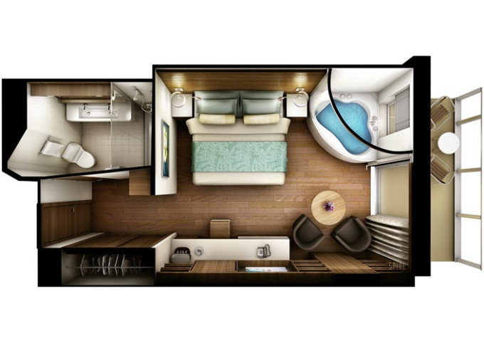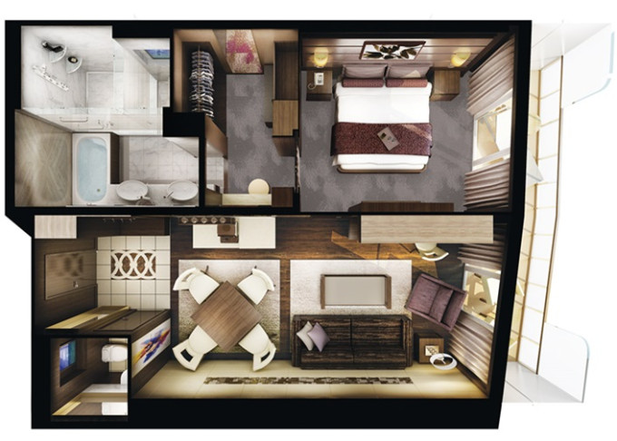 HD - The Haven Deluxe Suite 50 m² / balkón 7 m². Vírivka. 16. paluba - vpredu. Max 4 osoby. Výhody The Haven. | 7 010 € 3 505 € za osobu |
