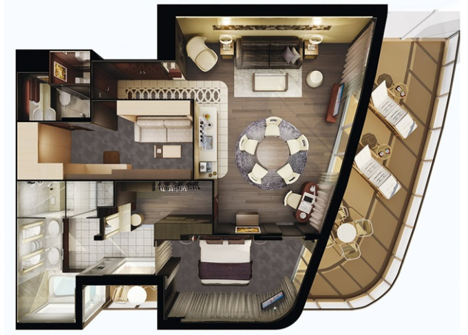 H3 - The Haven Deluxe Owner's Suite 53 m² / balkón 8 m². 17,18. paluba - vpredu. Max 4 osoby. Výhody The Haven. | 8 592 € 4 296 € za osobu | ||