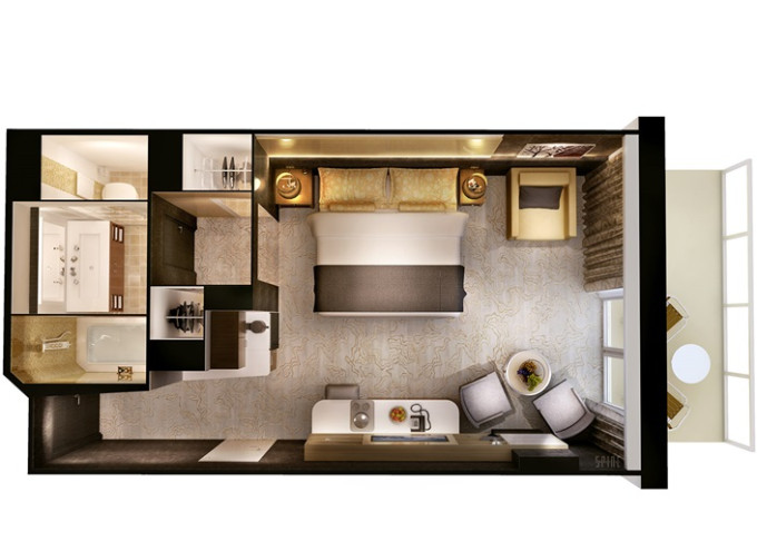 T1 - Vnútorná kajuta Studio Single 9 m². 10. až 12. paluba - vpredu. Max 1 osoba. | 1 324 € 662 € za osobu | ||