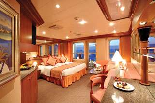 S - Suite s balkónom 26 m² + balkón 6 m². Max 2-3 osoby. 7,9. paluba. Cenový model All Inclusive .Výhody Suite. | 3 195 € 639 € za osobu | ||