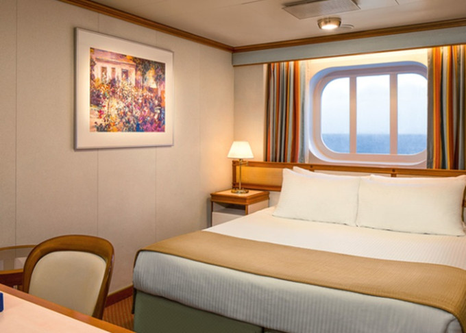 OV - Vonkajšia kajuta / obmedzený výhľad 17 m². Neotvárateľné okno s obmedzeným výhľadom. Max 2-4 osoby (1-2 horné lôžka). | 13 328 € 6 664 € za osobu |
