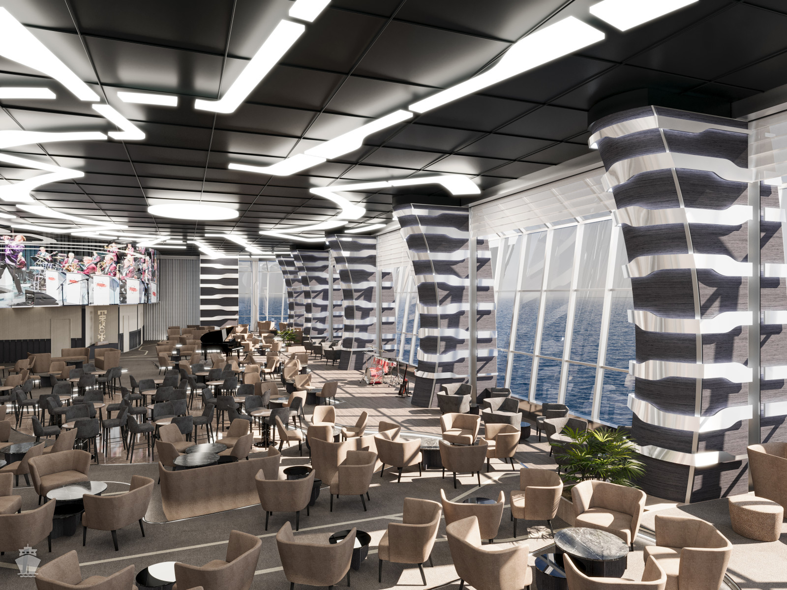- Vstup do exkluzívneho panoramatického salóna Top Sail Lounge s barom - popoludňajší čajový servis, ľahké občerstvenie 24 hodín denne a živá hudba vo večerných hodinách.