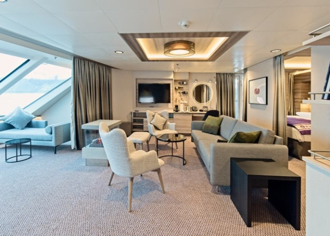 ME - Expedition Suite s balkónom 20-28 m². Balkón. TV, minibar, varná kanvica, kávovar. 8,9. paluba. Max 4 osoby. Výhody Suite. | 17 714 € 8 857 € za osobu | ||