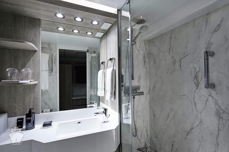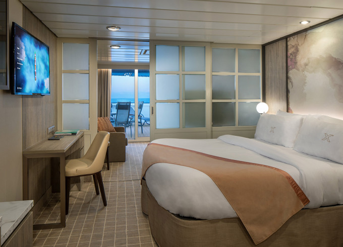 - Kajuty sú umiestnené v blízkosti lodného Spa. K ich vybaveniu patrí posilnený systém vzdušnej filtrácie, posteľ Queen-Size (v kategóriách Edge King-Size), veľké zasúvacie sklenené dvere, exkluzívne posteľné prádlo eXhale®, veľkorysé skladovacie priestory.