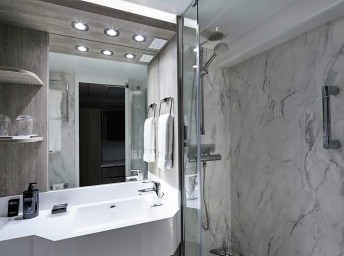 RS - Royal Suite 50 m² + balkón s vírivkou 18 m². Kúpeľňa s vírivkou. 6. paluba vzadu. Max 4 osoby. Výhody Suite The Retreat. | 9 558 € 4 779 € za osobu | ||