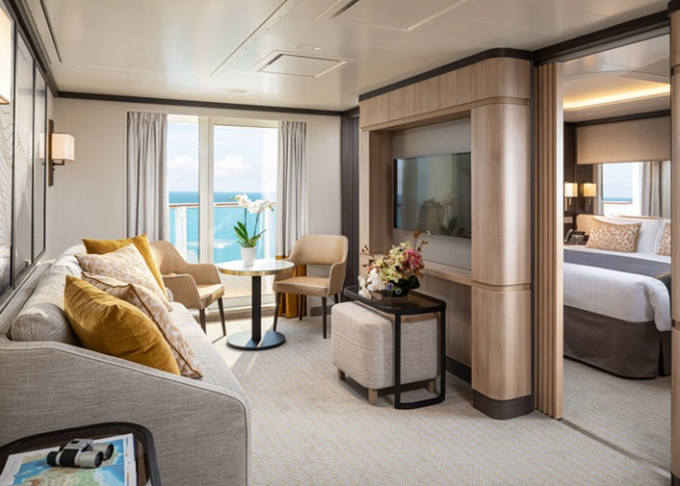 B6 - Suite s balkónom 37 m² + balkón 11 m². 9,15. paluba. Max 3-4 osoby. Spálňa, obývacia izba, mramorová kúpeľňa s vírivkou. Výhody Suite. | 11 946 € 5 973 € za osobu | ||