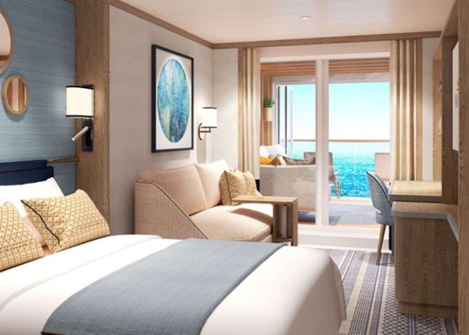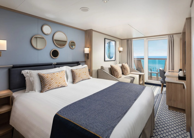 EE - Kajuta s balkónom Deluxe 19 m² + balkón 2 m². 9. až 15. paluba. | 8 018 € 4 009 € za osobu | ||