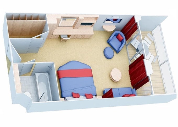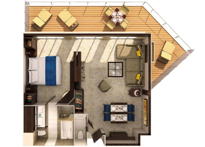 J4 - Junior Suite s balkónom 25 m² + balkón 7,5 m². 6. až 13. paluba. Max 4 osôb. Výhody Royal Suite Sea Class. | 5 305 € 5 305 € za osobu | ||