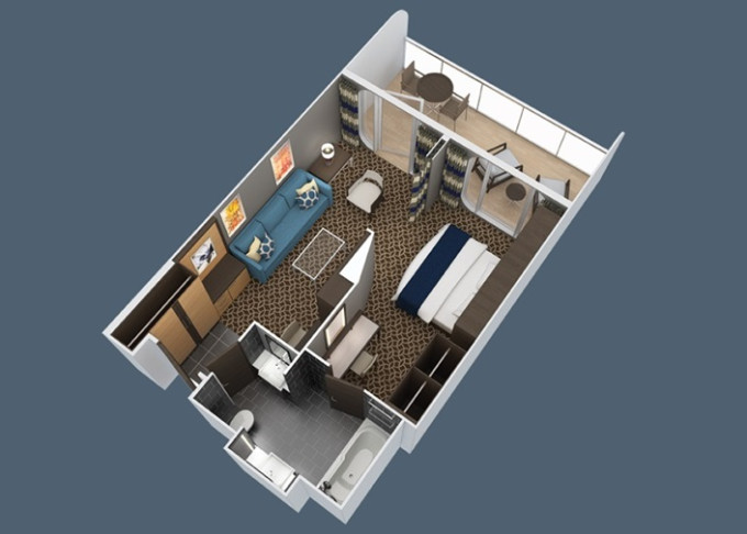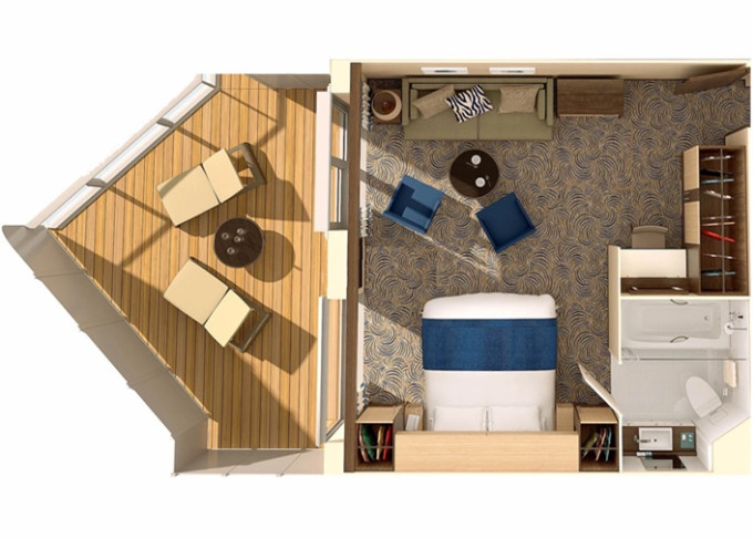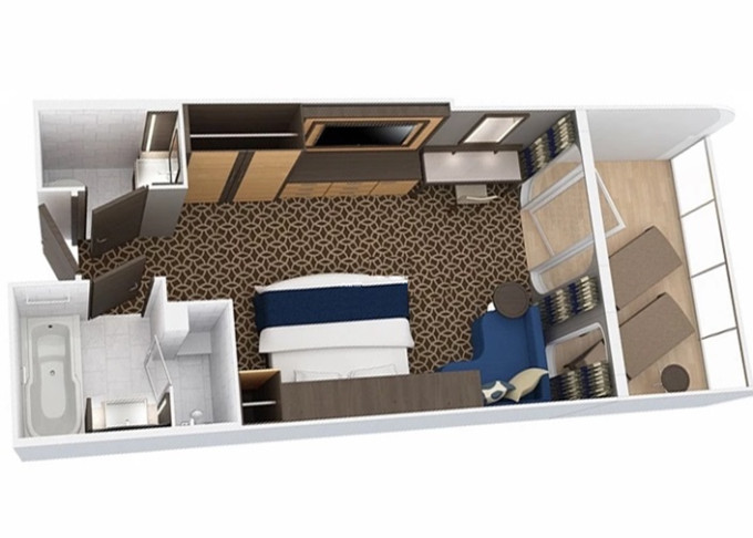 J3 - Junior Suite s balkónom 25 m² + balkón 7,5 m². 8,9,10. paluba. Max 4 osôb. Výhody Royal Suite Sky Class. | 5 371 € 5 371 € za osobu | ||