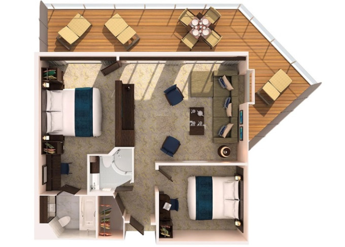 GS - Grand Suite s balkónom 32 m² + balkón 10 m². 8. až 12. paluba. Max 4 osoby. Výhody Royal Suite Class. | 8 743 € 8 743 € za osobu | ||
