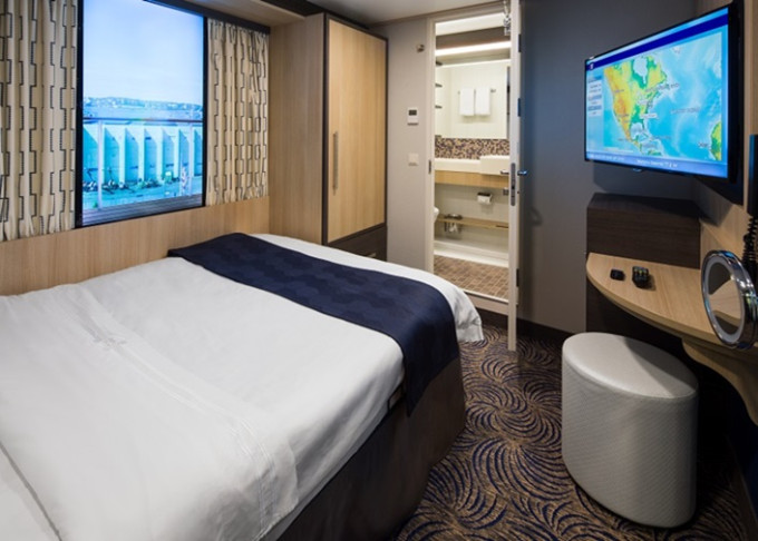 1U - Vnútorná kajuta s virtuálnym balkónom 15 m². Obrazovka veľkosti balkónových dverí s premietaným výhľadom. Centrálne umiestnenie. Max 3-4 osoby. | 2 286 € 762 € za osobu | ||